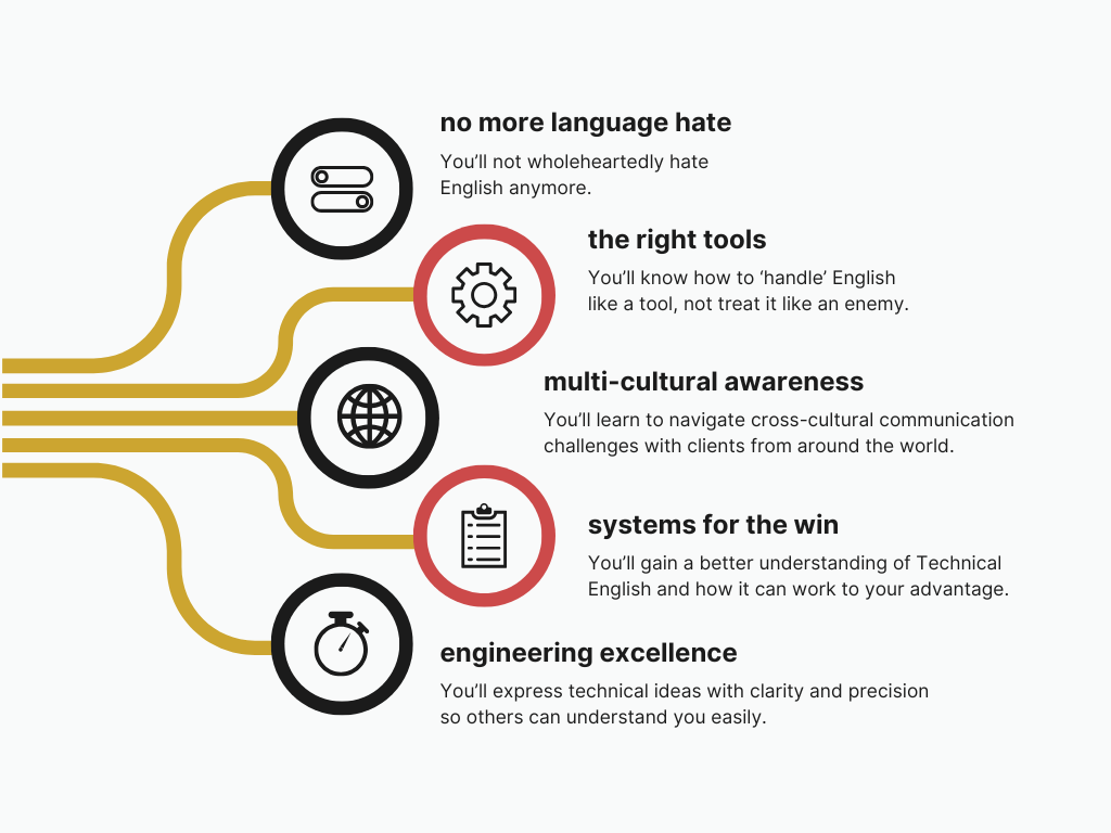 That is why I have created this technical English course: to help you develop the practical skill set to learn English that gets the job done.